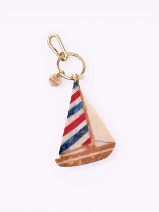 Handbemalter Segelboot Taschenhänger + Schlüsselanhänger Ecru I Geschenkidee