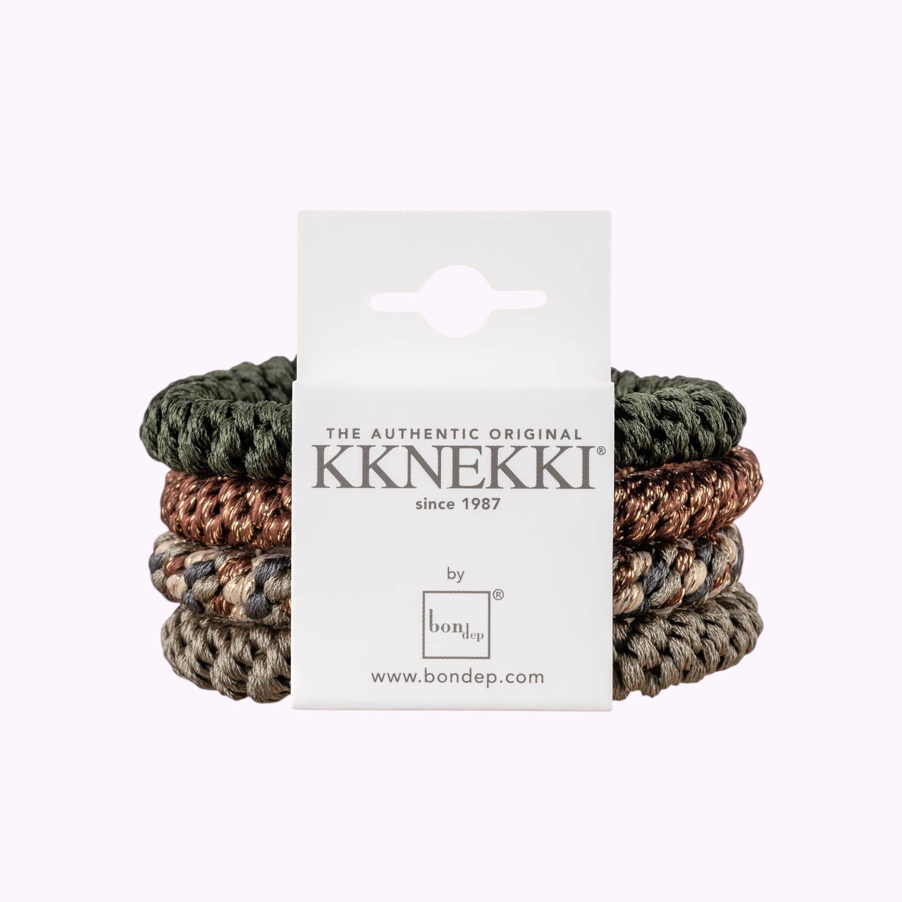 Das Original. Anerkannt als einer der besten Haargummis der Welt aufgrund seiner Haltbarkeit, angenehmen Elastizität, Haarschonung und schönen Verarbeitung. Die endlose Reihe von Nachahmern ist ein guter Beweis für seinen einzigartigen Erfolg, während es bisher noch niemandem gelungen ist, seine einzigartige Qualität und Eigenschaften zu kopieren. Der Kknekki Haargummi ist einfach ein wunderbares Produkt; gewebt aus mehr als 60 Fäden mit einer einzigartigen Technik, die dafür sorgt, dass er seine Elastizität über die Zeit behält und gleichzeitig extrem weich und sanft zu jeder Art von Haar ist. Die einzigartige Spinn- und Webtechnik gibt nicht nur eine schier endlose Anzahl von Farbkombinationen, sondern sorgt auch dafür, dass sie auch im Salzwasser nicht ausbleichen oder ausfransen.