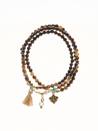 Diese wunderschönen Armbänder kommen in der abgebildeten Geschenkverpackung mit einer Messingdose, um das Armband aufzubewahren, und einem kleinen Handbuch, in dem die Kräfte der Steine erläutert werden. My Heritage Kollektion