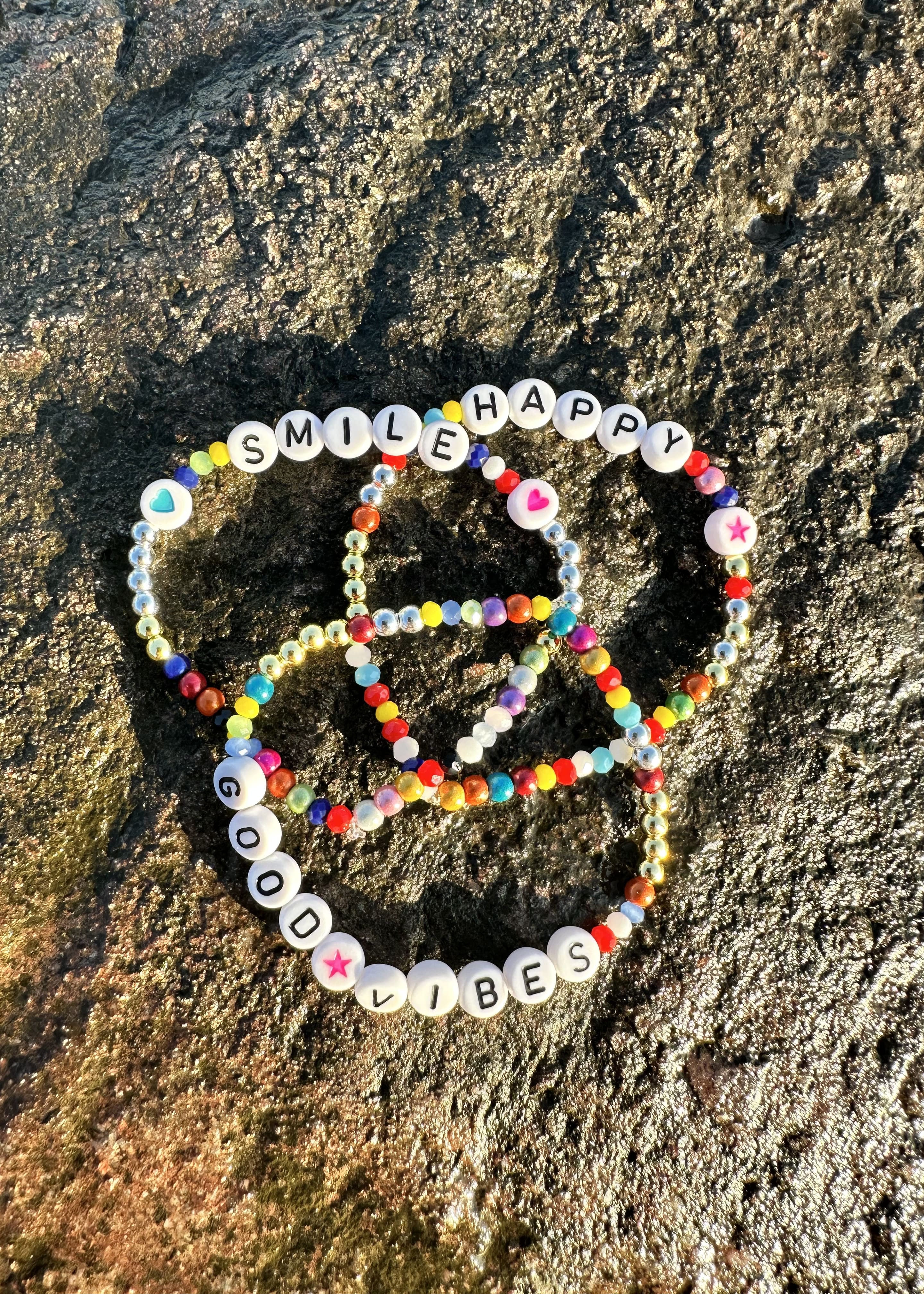 🌸 ein schönes Geschenk an Dich selbst oder für jemanden, den Du magst. Das GOOD VIBES Wortarmband bringt gute Laune und ist ein echtes Statement. Es ist das perfekte Mix-and-Match Accessoires.