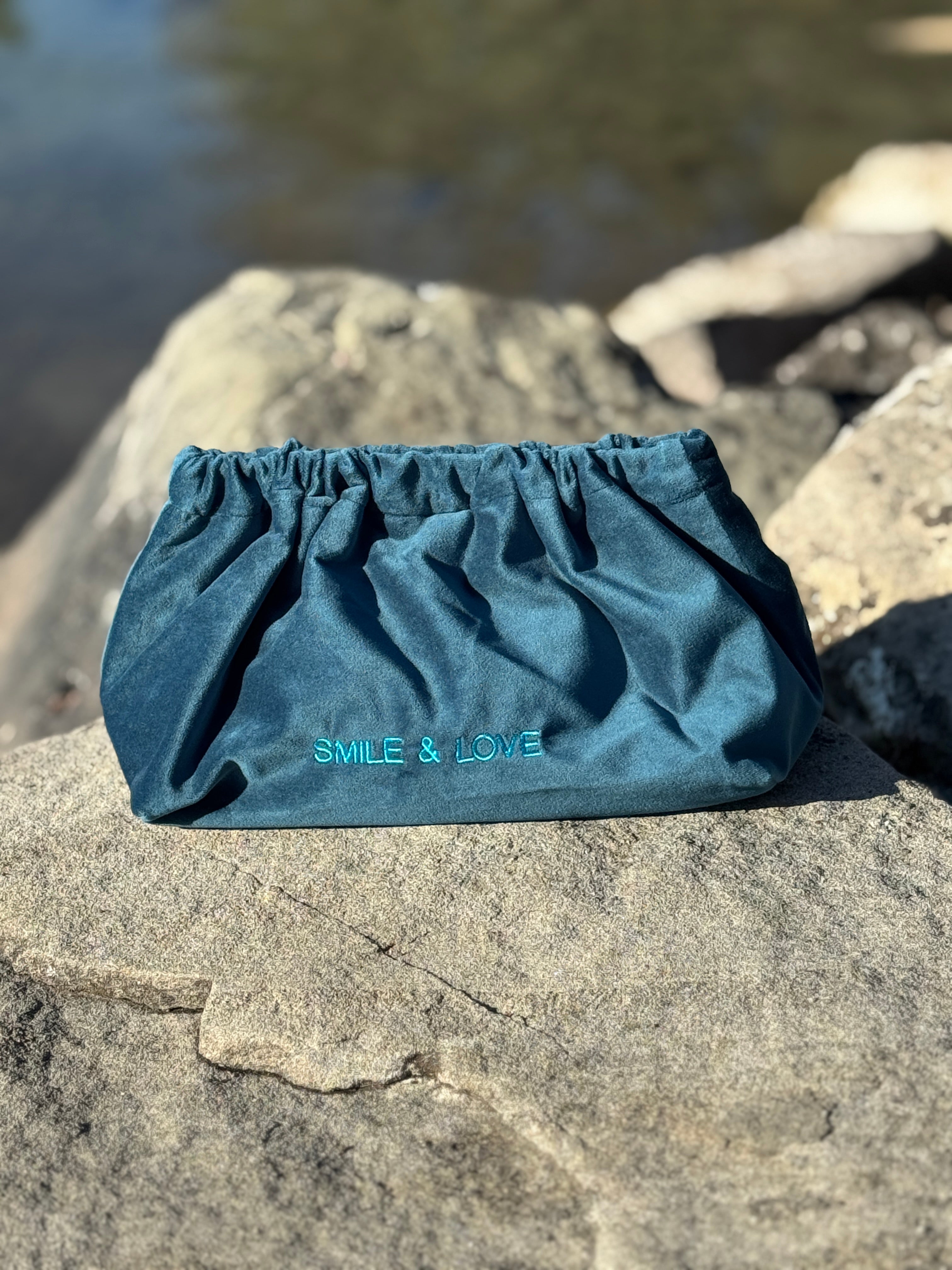 Velvet mit "SMILE AND LOVE" Stickerei.