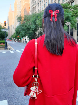 Handbemalter Schleifen-Croissant-Taschenanhänger + Schlüsselanhänger I Geschenkidee