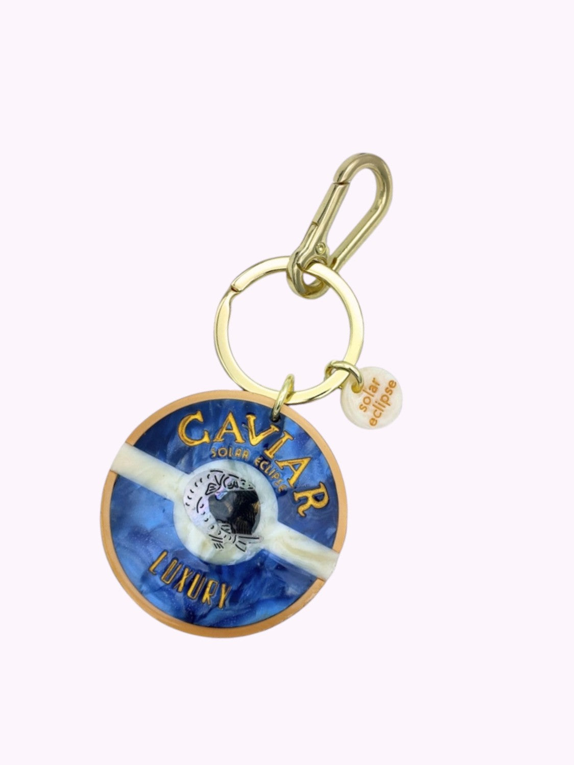 Der Caviar Schlüssel-/Taschenanhänger wird aus Celluloseacetat — einem umweltfreundlichen, biologisch abbaubaren Material aus recyceltem Holzzellstoff hergestellt.