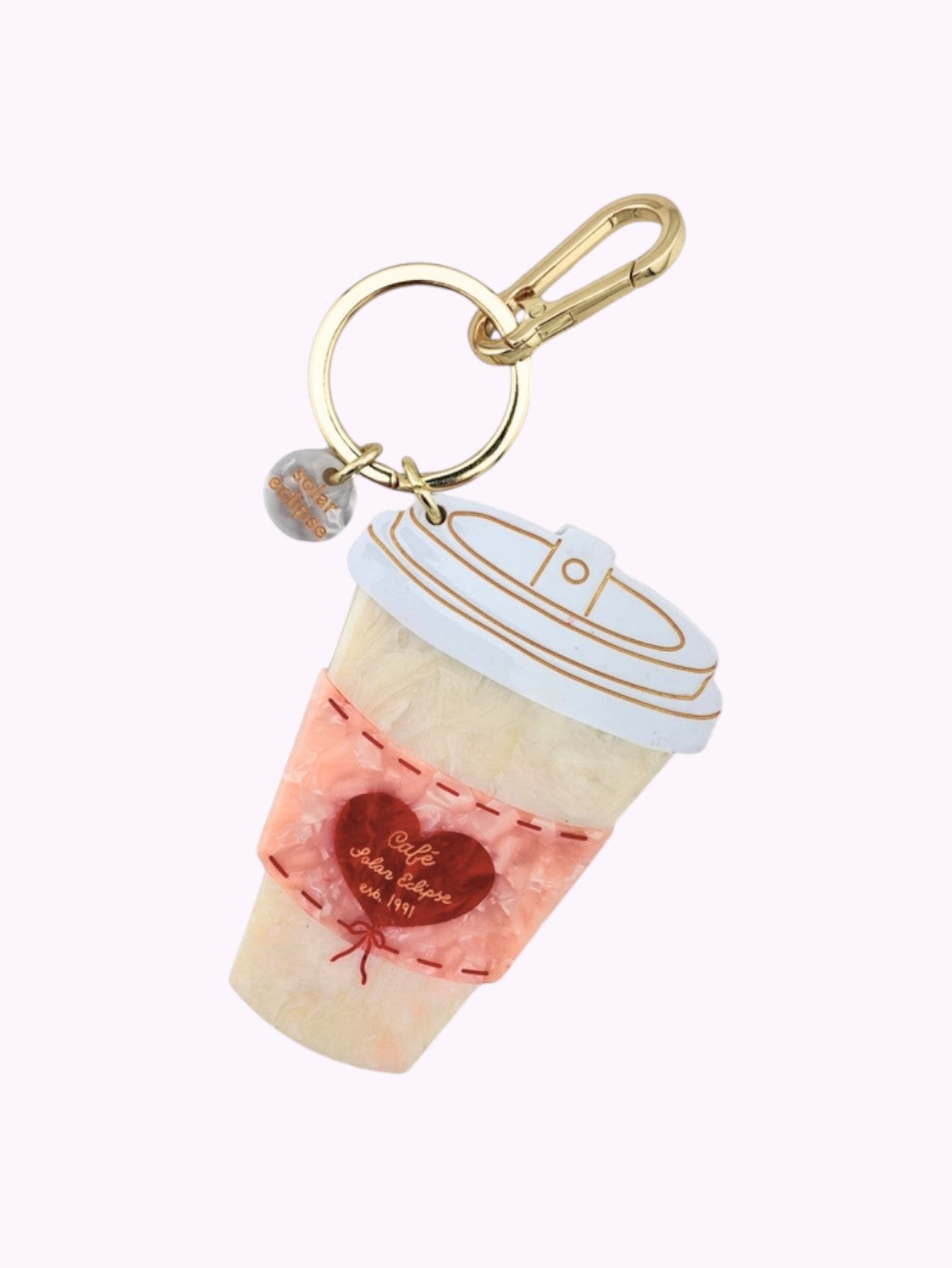 Der Love Coffee-Schlüsselanhänger wird von den Solar Eclipse -Künstlern handgefertigt. Sorgfältig hergestellt aus Celluloseacetat — einem umweltfreundlichen, biologisch abbaubaren Material aus recyceltem Holzzellstoff.