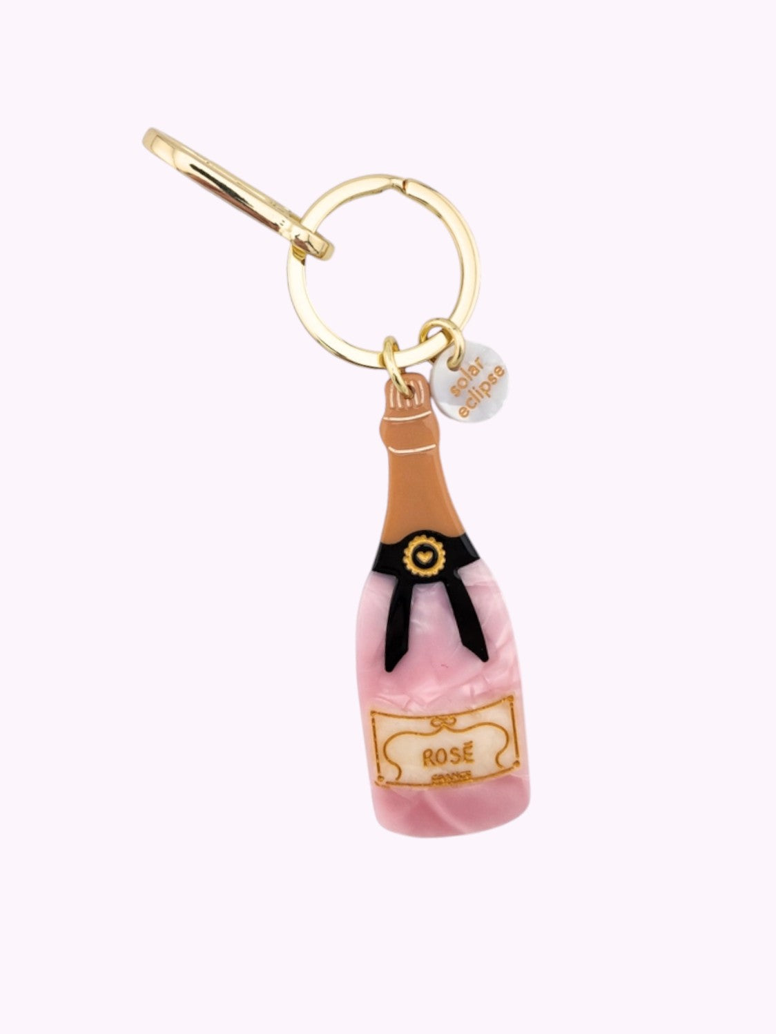 Der Rosé Schlüssel-/Taschenanhänger wird aus Celluloseacetat — einem umweltfreundlichen, biologisch abbaubaren Material aus recyceltem Holzzellstoff hergestellt.