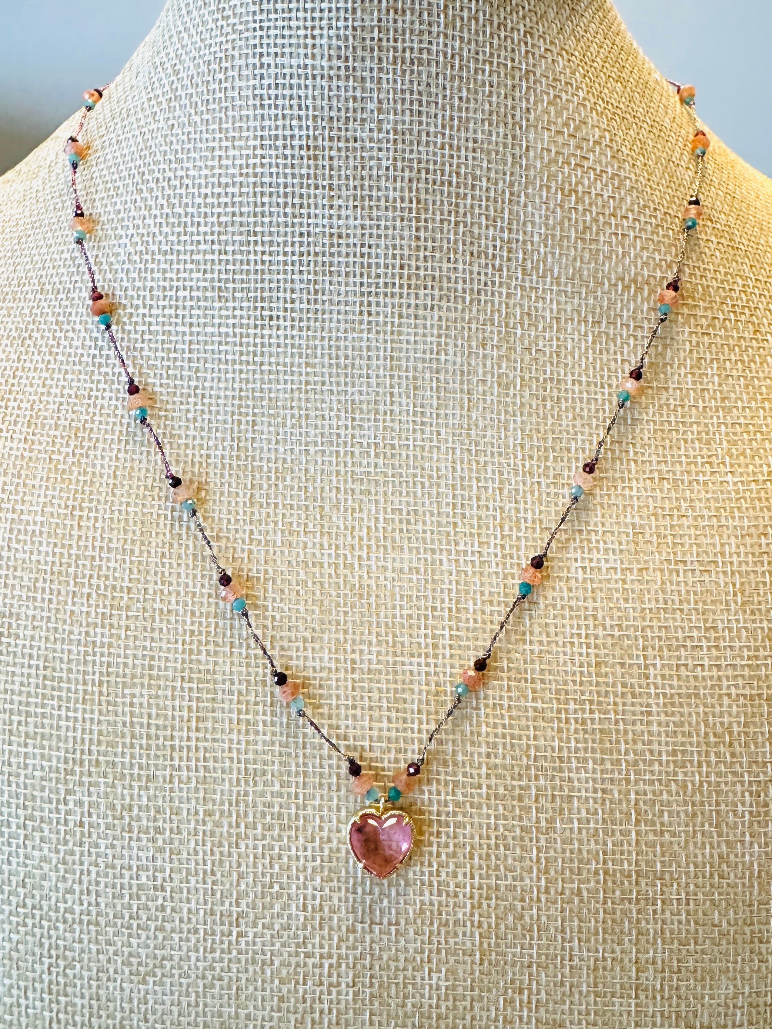 Material: Turmalin und Rosenquarz Steine und Rosenquarz Herzanhänger