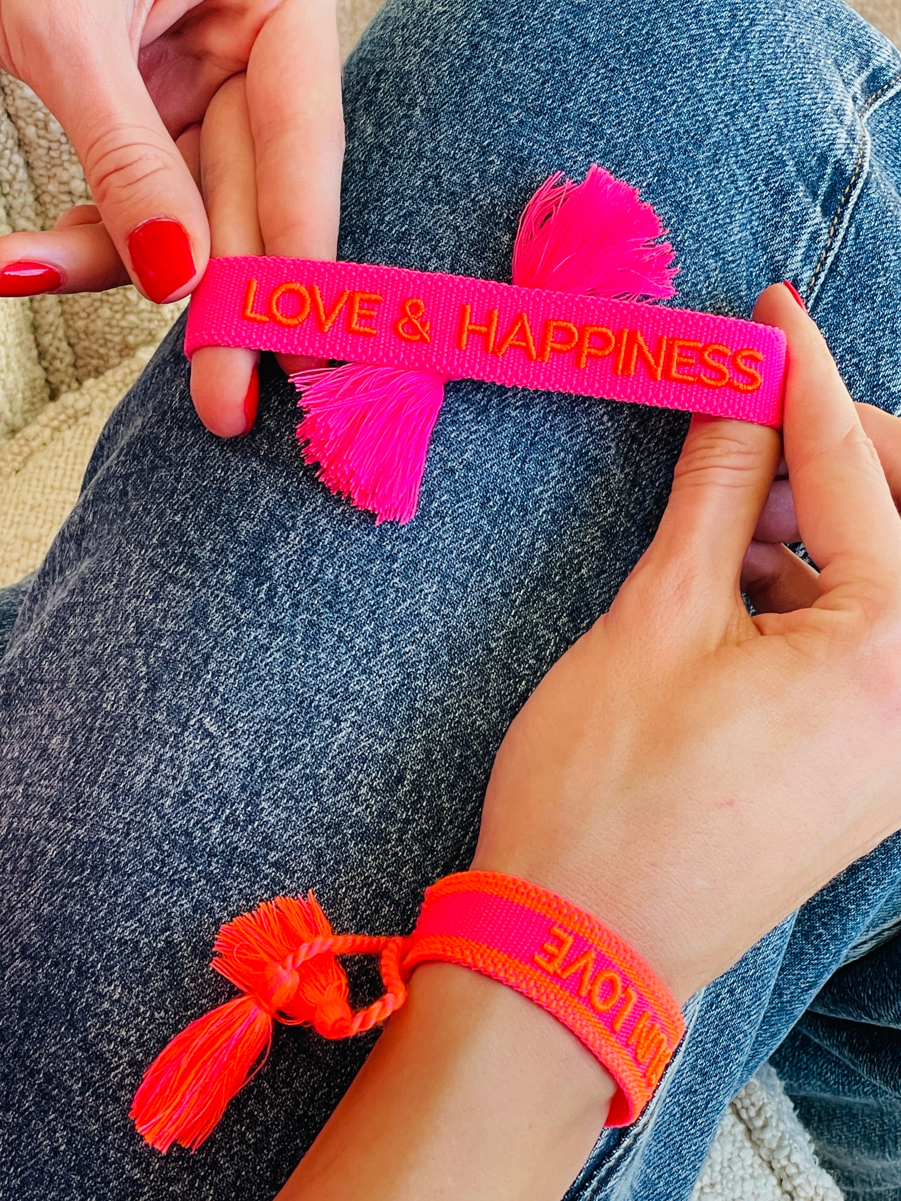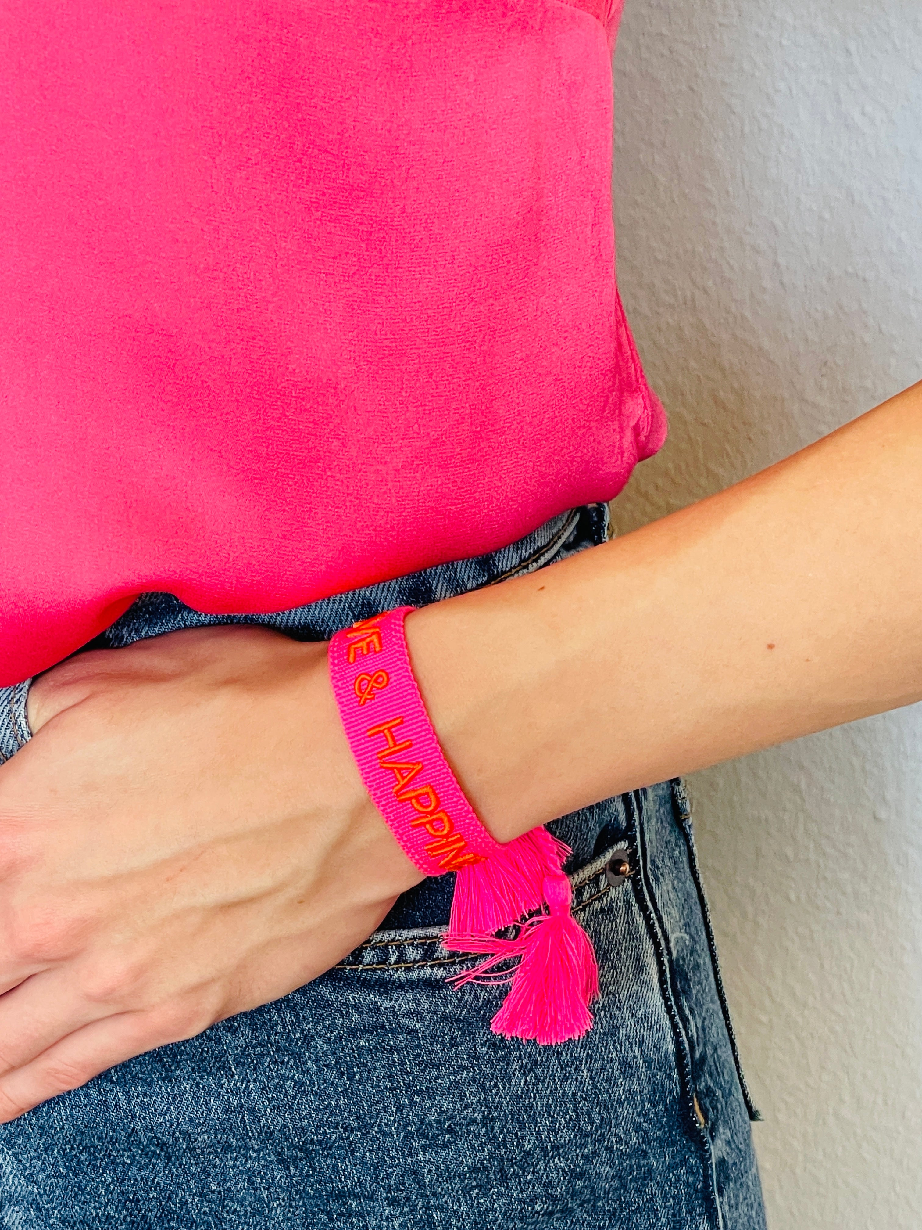 LOVE & HAPPINESS Armband: Bordüre Neonpink
