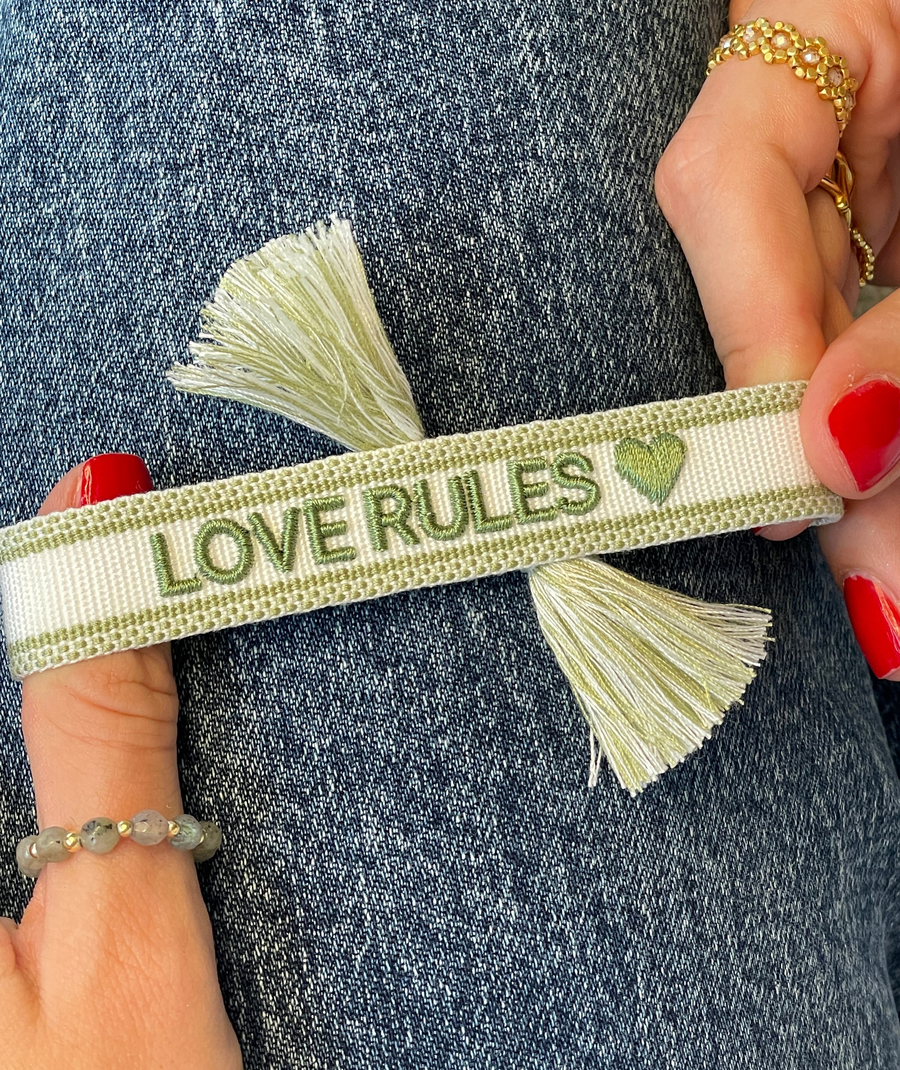 LOVE RULES Armband: Offwhite/Grün