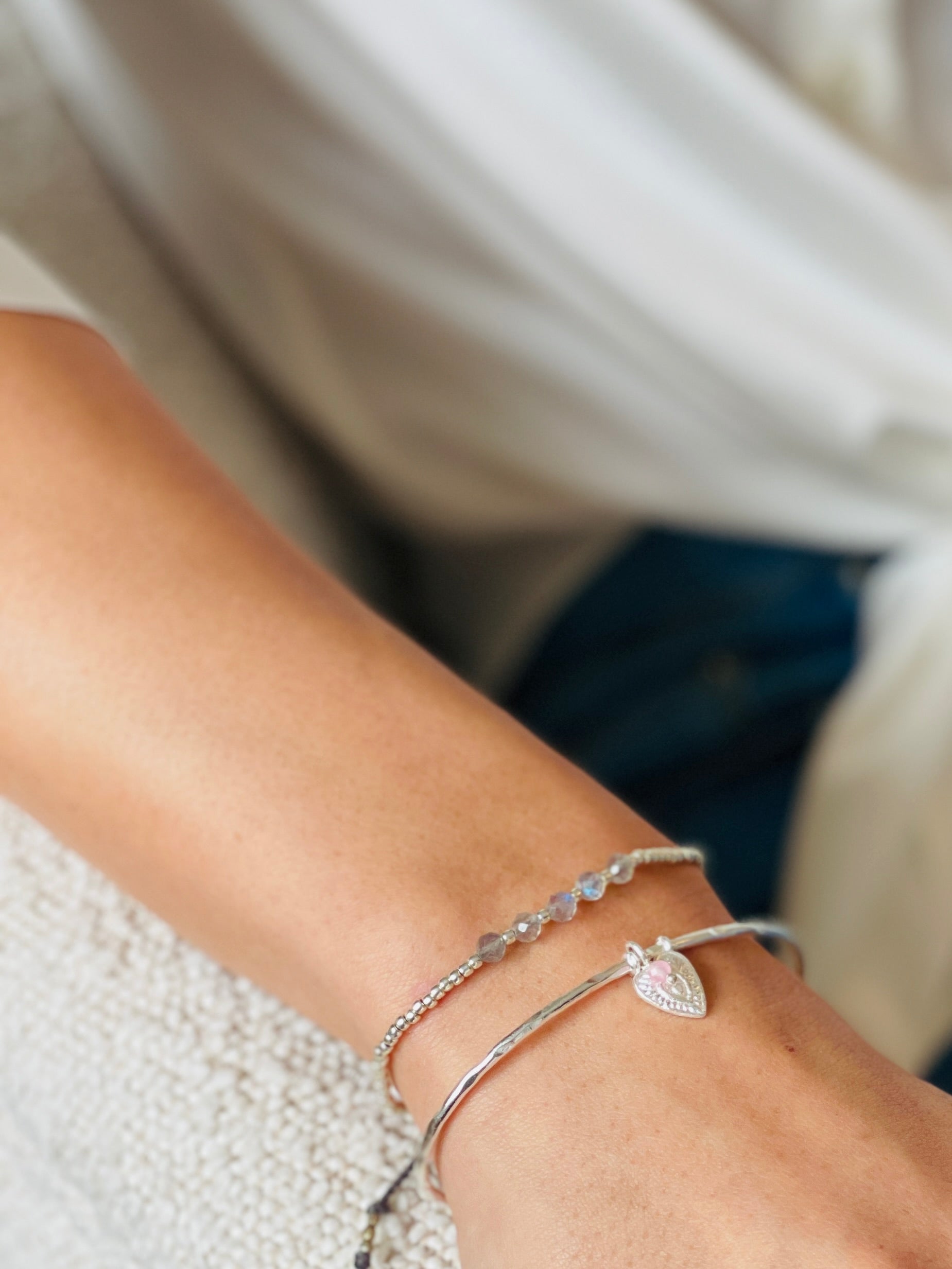 Herz Armband mit einem Rosenquarzstein