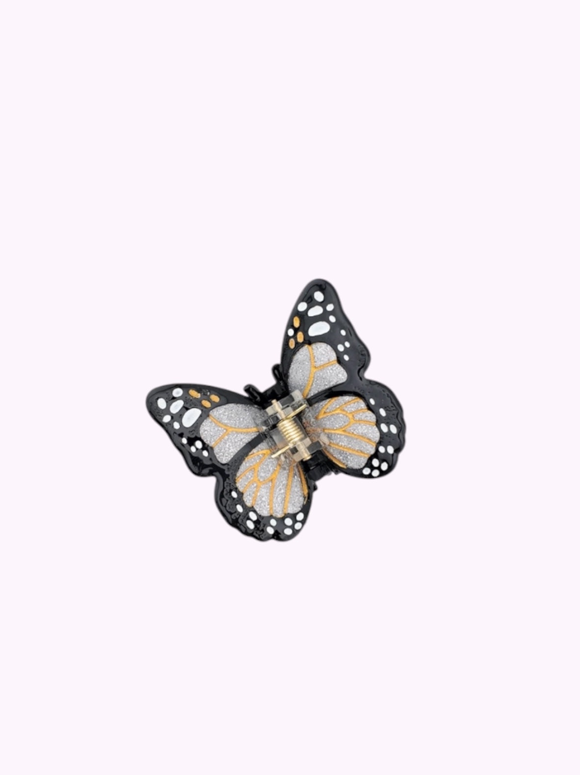 Handbemalte Mini Schmetterling Haarspange Silber/Schwarz Glitter | Ges – GLAMSUNLOVE