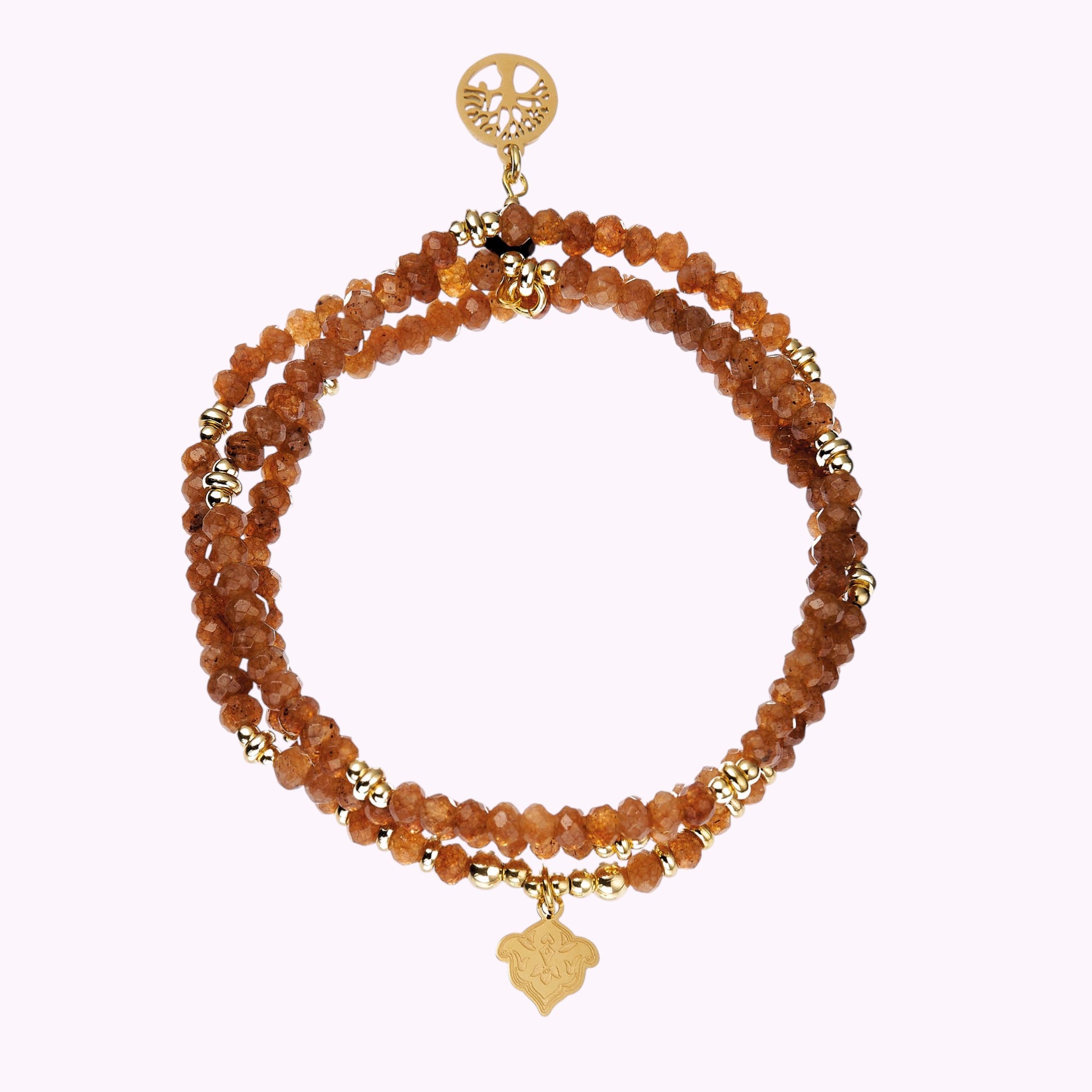 Material: Mala Armband dreifach auf Elastikband mit Perlen aus vergoldetem 925 Sterlingssilber, facettierten Jadesteinen (braun)