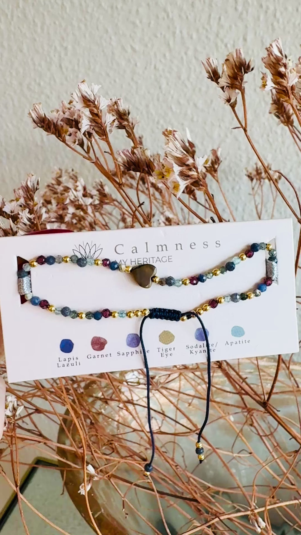Dieses besondere Armband ist aus handselektierten Edelsteinen mit einem wunderschönen Herz aus Tigerauge gefertigt.