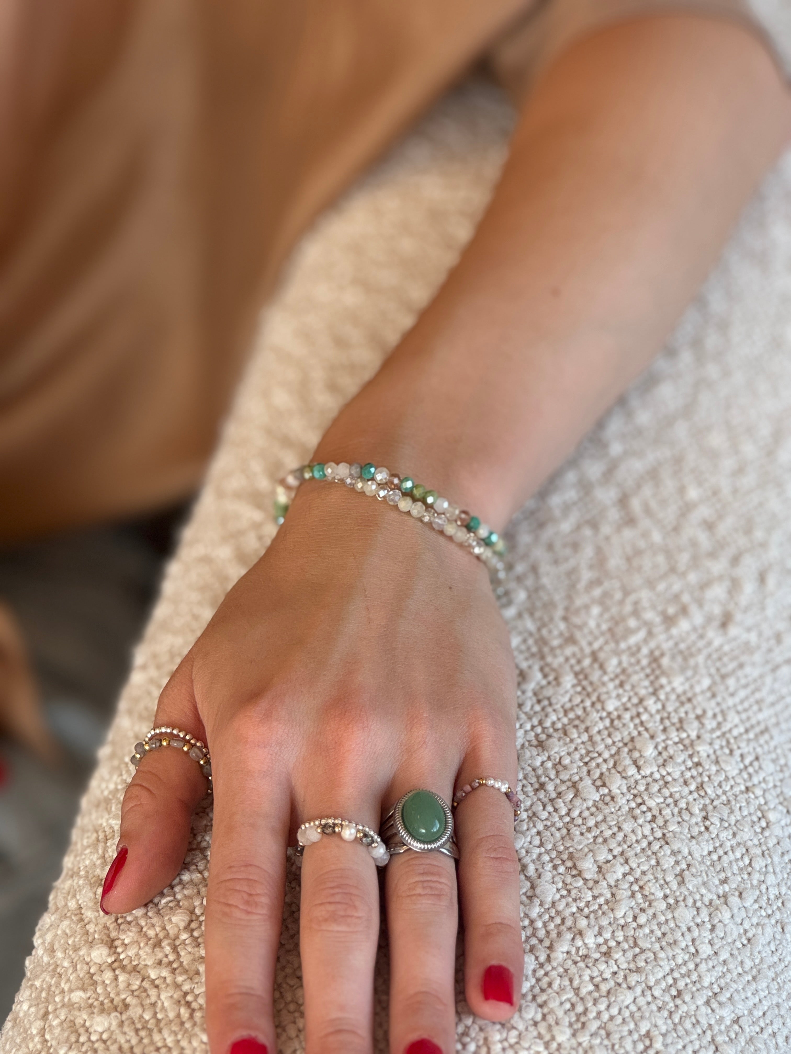 Material: Glasperlen, auf Elastikband aufgezogen