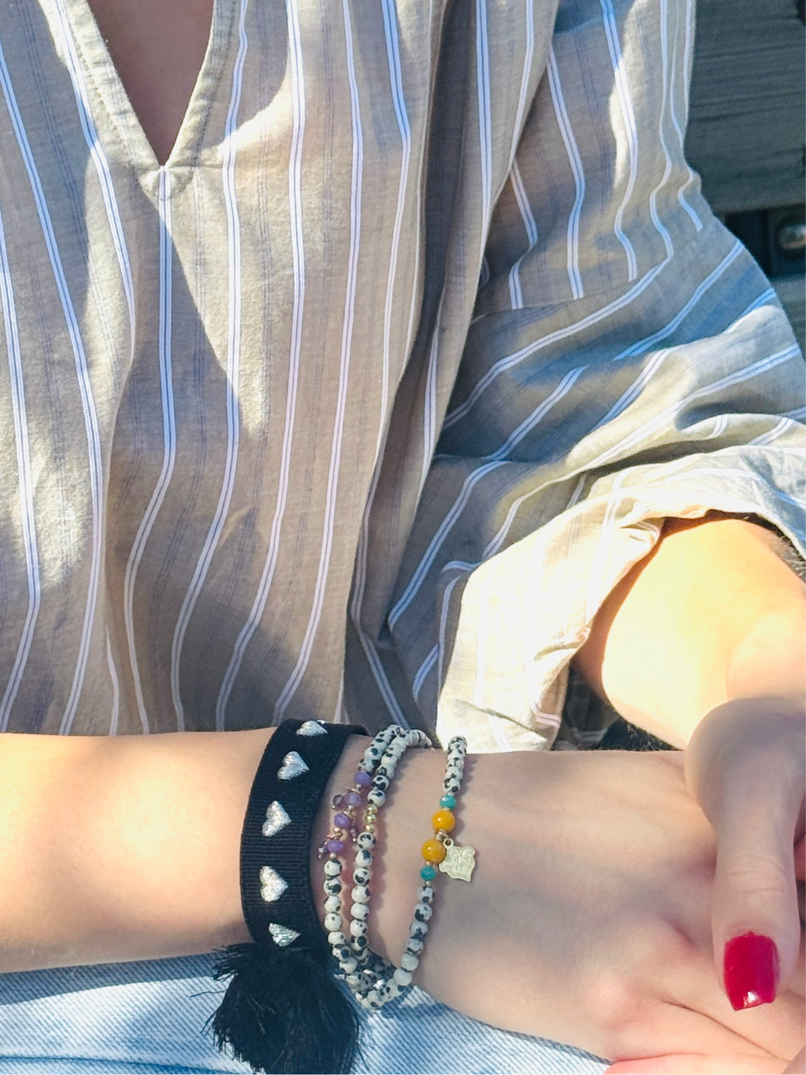 Look aus dem hochwertige Triple Halbedelstein Armband und dem 🤍🤍🤍Statement Armband.