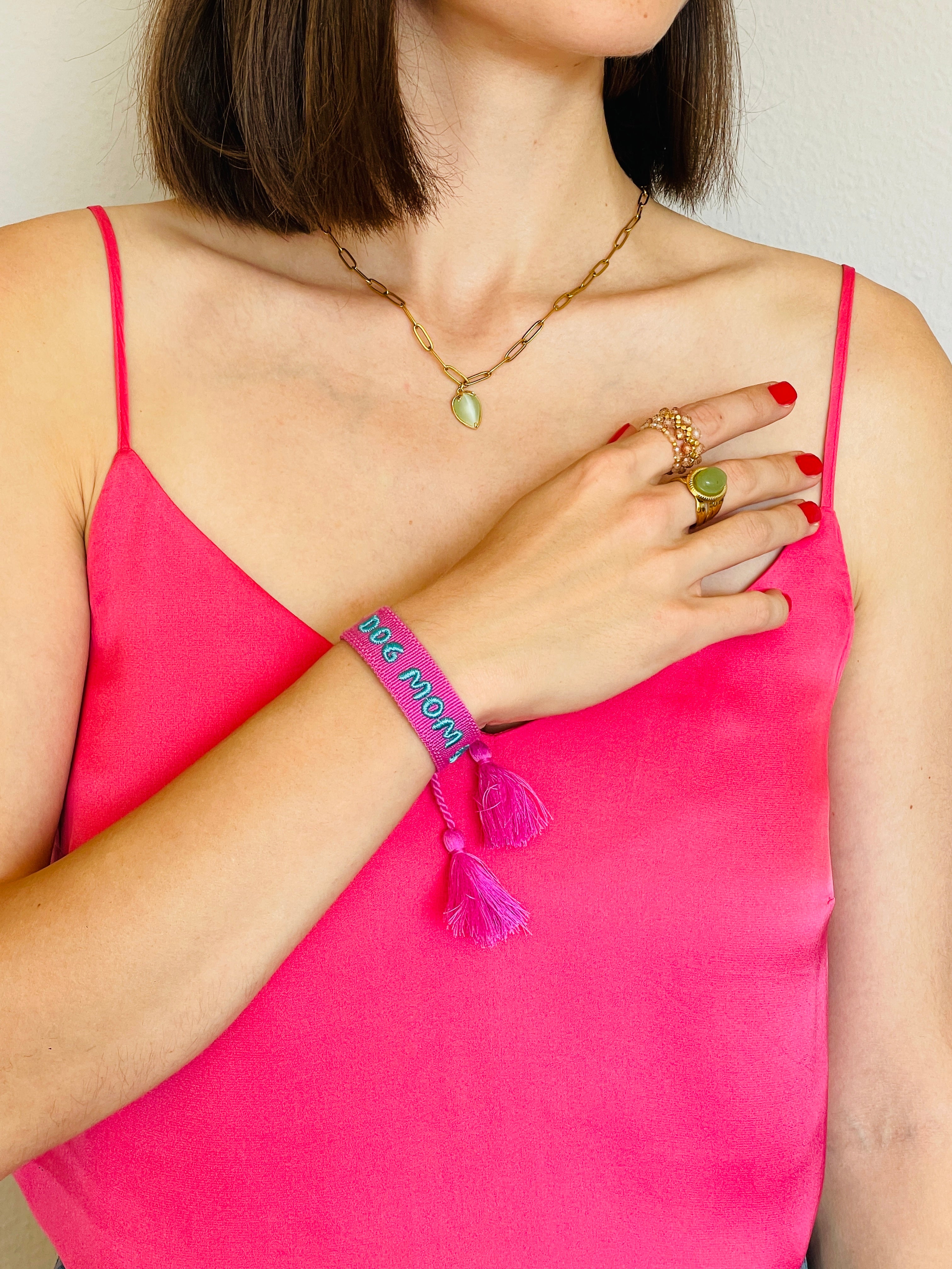 DOG MOM Armband: BordĂŒre pink
