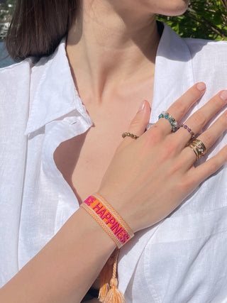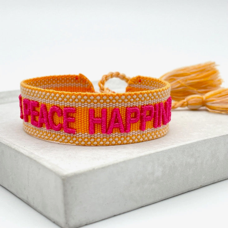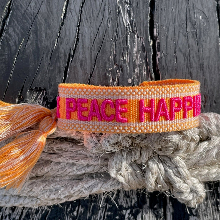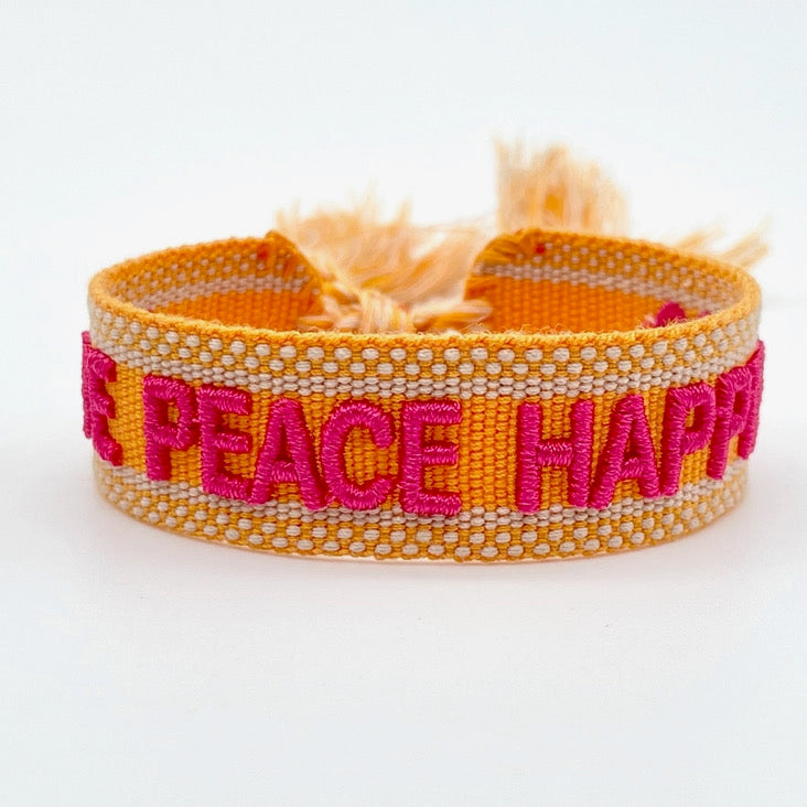 LOVE PEACE HAPPINESS Armband: Bordüre orange-beige